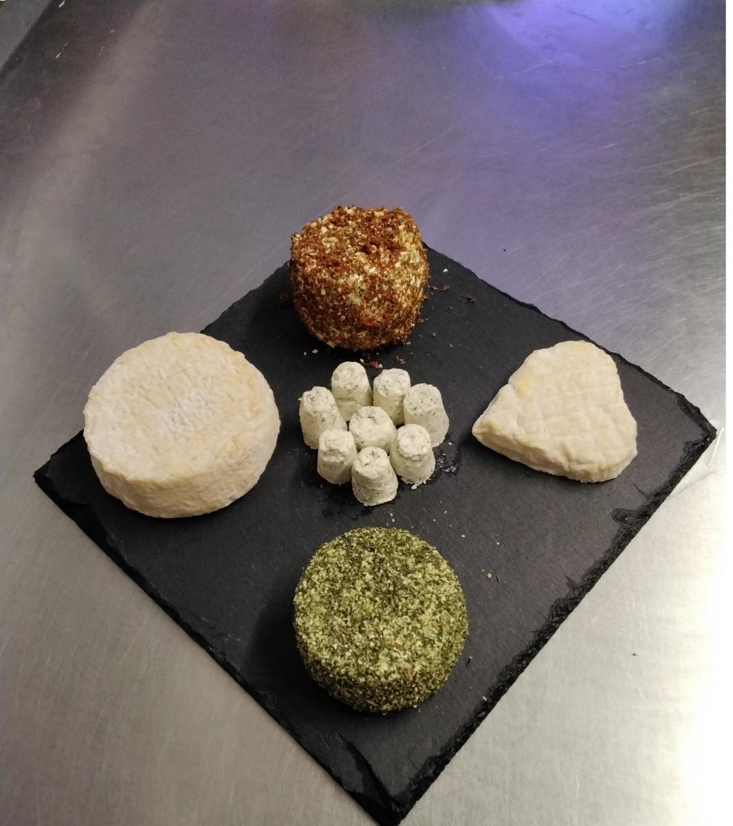 1 rond ou pavé du clocher affiné, 1 petit coeur affiné, 2 fulviens frais aromatisés : bruschetta (tomates, oignon, origan, basilic) et ail/fines herbes, 8 bouchons apéros ail/fines herbes.