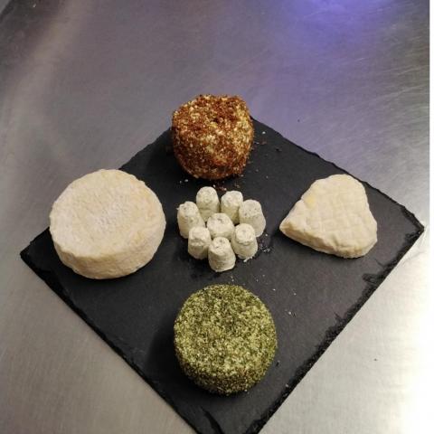 1 rond ou pavé du clocher affiné, 1 petit coeur affiné, 2 fulviens frais aromatisés : bruschetta (tomates, oignon, origan, basilic) et ail/fines herbes, 8 bouchons apéros ail/fines herbes.